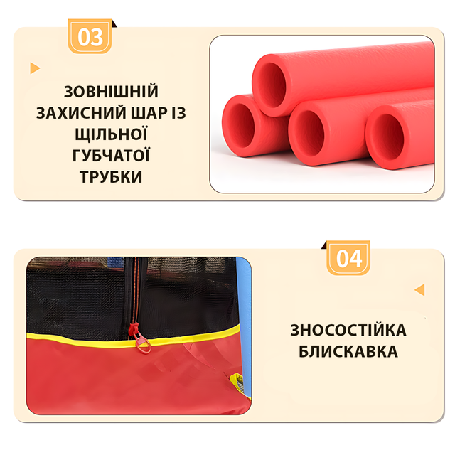 А благодаря наружной защитной сетке, мягкой обшивке стоек и пружин, родительское сердце может не волноваться: прыгаем спокойно.