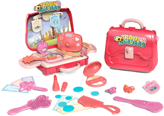 Детский игровой косметический набор Mini Travel Out — это увлекательный и стильный комплект, созданный для маленьких модниц, которые любят экспериментировать с внешностью и создавать собственные яркие образы. Набор включает 33 аксессуара, таких как щеточки, гребни, блестящие украшения и даже повязку на голову, что делает игру особенно интересной. Благодаря прочному чемоданчику, набор удобно брать с собой в путешествия или на прогулки, что позволит ребенку всегда иметь свои "сокровища" под рукой.