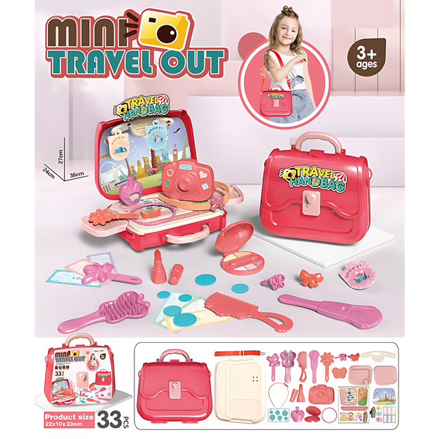 Детский косметический набор сумка Mini Travel Out с аксессуарами, 33 предмета, в розовом чемодане