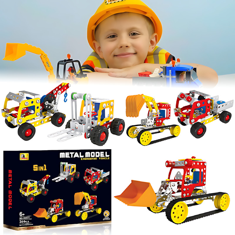 Этот конструктор позволит ребёнку почувствовать себя настоящим инженером! С набором X638-4 "Строительная техника" можно собрать пять различных моделей строительной техники — от экскаватора до грузовика. Конструктор включает 244 детали из высококачественного металла, устойчивого к коррозии и деформации, что гарантирует долговечность и безопасность. Детали окрашены в яркие цвета, что добавляет процессу сборки увлекательности, стимулируя ребёнка к новым достижениям и расширению кругозора.