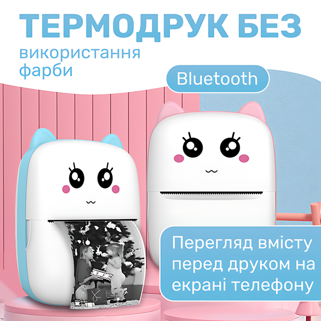 ???? Детский мини-принтер моментальной термопечати C9 «Ушки» | Bluetooth, аккумулятор 1000 мАч, рулон бумаги в комплекте | Принтер для телефона (iOS/Android)