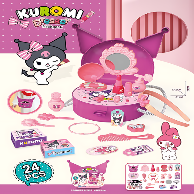 Детский набор игрушечной косметики Kuromi – 26 предметов в чемодане с острыми ушками, фиолетовый