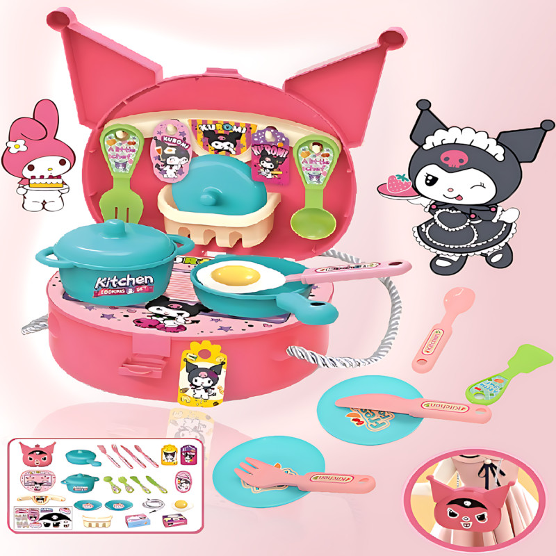 Погрузитесь в увлекательный мир кулинарии вместе с детским набором Kuromi! Этот красочный игровой набор включает 26 предметов и станет отличным развлечением для маленьких поваров. Кухонный комплект выполнен в нежно-розовом оттенке и упакован в чемоданчик с ремешком, оформленный в виде милой мордочки котика с острыми ушками. Чемоданчик выступает одновременно плитой с варочной поверхностью, добавляя реализма игре и позволяя готовить прямо на «плите»!