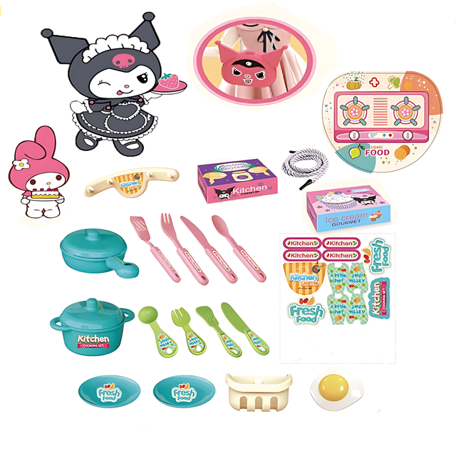 Детский набор игрушечной кухонной посуды Kuromi, 26 предметов, игровой набор Кухня в чемодане, розовый
