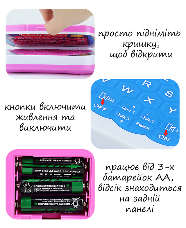 Детский обучающий ноутбук AH-802Y StudyGame для изучения английского языка, розовый