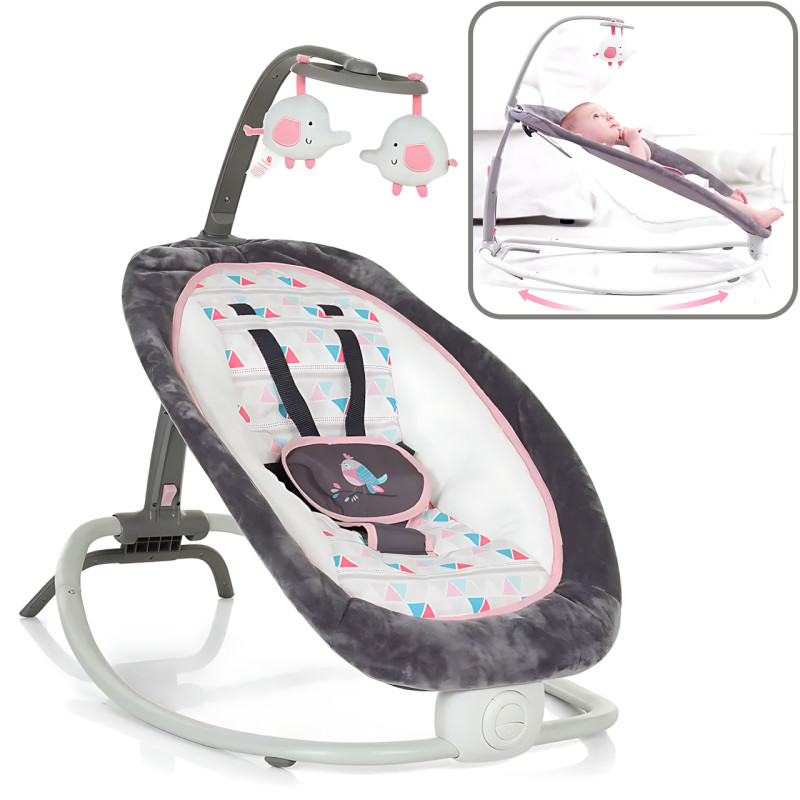 Детский шезлонг-качалка Mastela 6917 с вибрацией, мелодиями и подвесными игрушками, от рождения до 9 кг, серо-розовый