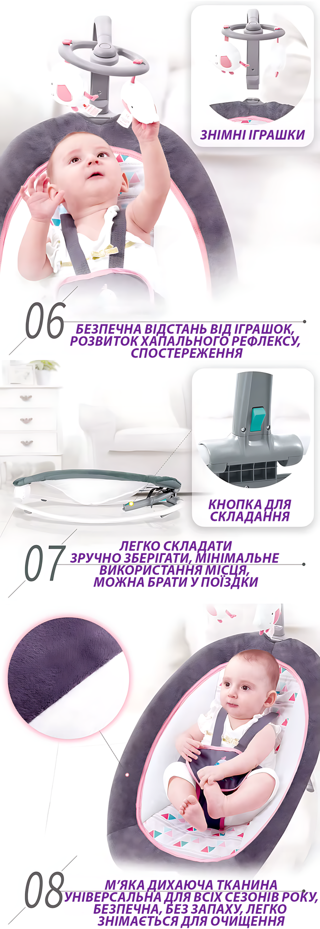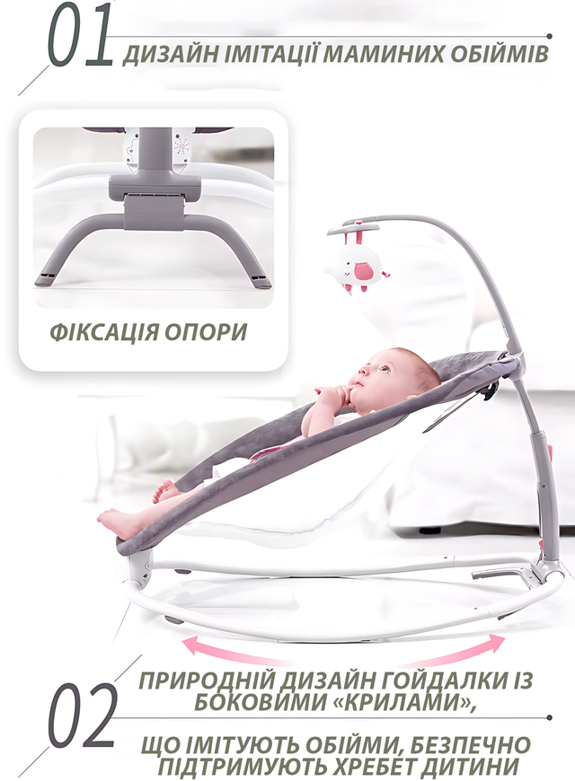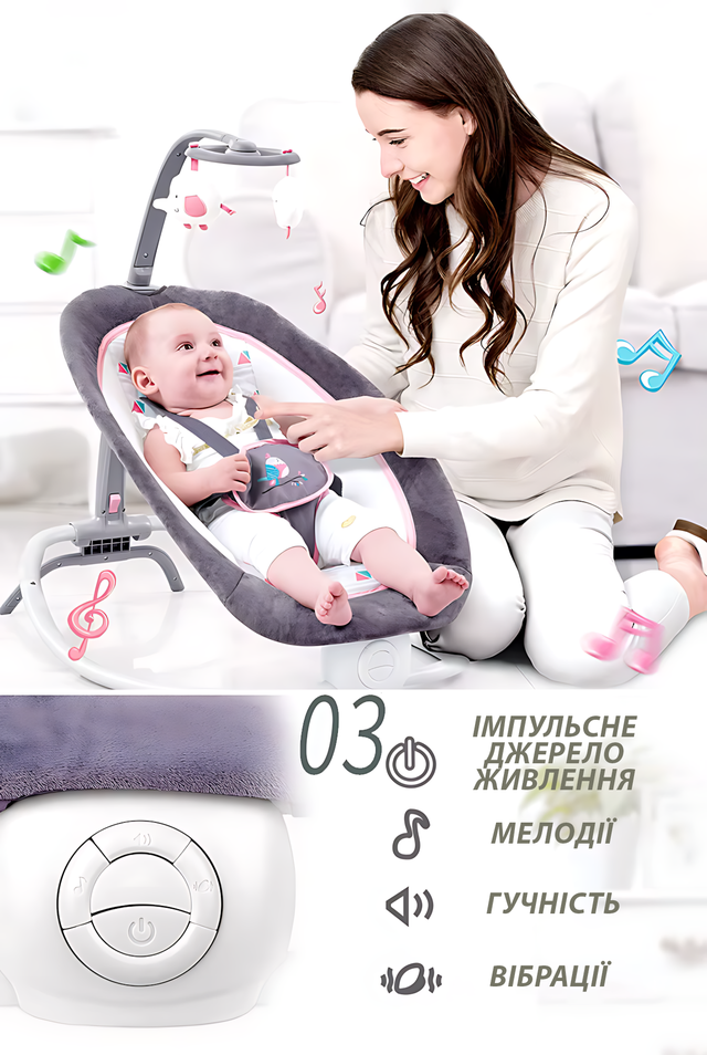 - ???? Вибрация — мягко укачивает и помогает при коликах.