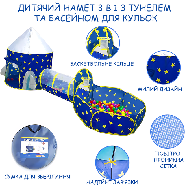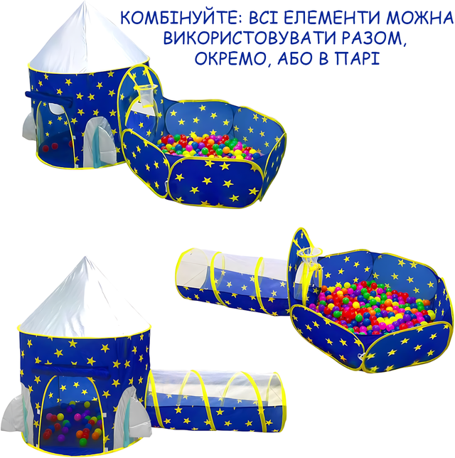 - Тип: игровой набор 3-в-1 (палатка + тоннель + манеж);