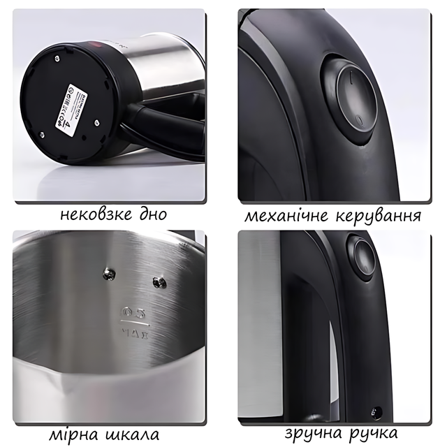 - Компактность: Объем 0,5 литра позволяет использовать чайник в ограниченном пространстве, что делает его идеальным для путешествий и небольших кухонь;