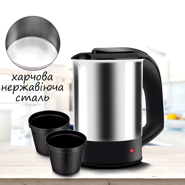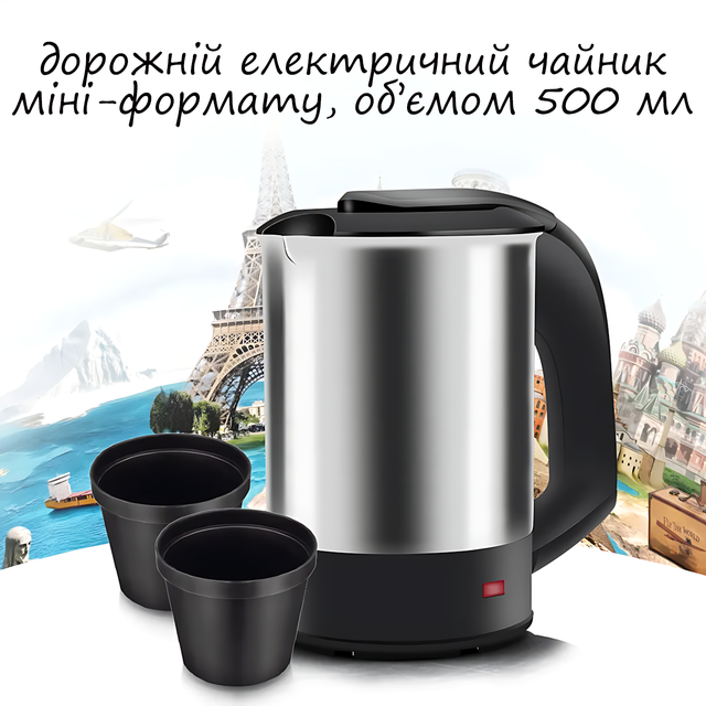 Дорожный электрочайник RAF R7887 из нержавеющей стали с двумя чашками, 1000 Вт, 0,5 л