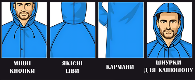 Дождевик для мужчин, изготовленный из высококачественного материала EVA, подходит для любого сезона. Универсальный размер (52-54), прямой покрой и длина до колена делают его комфортным для носки. Дождевик оснащен длинными рукавами, застежками на молнии и кнопках, а также капюшоном и карманами.