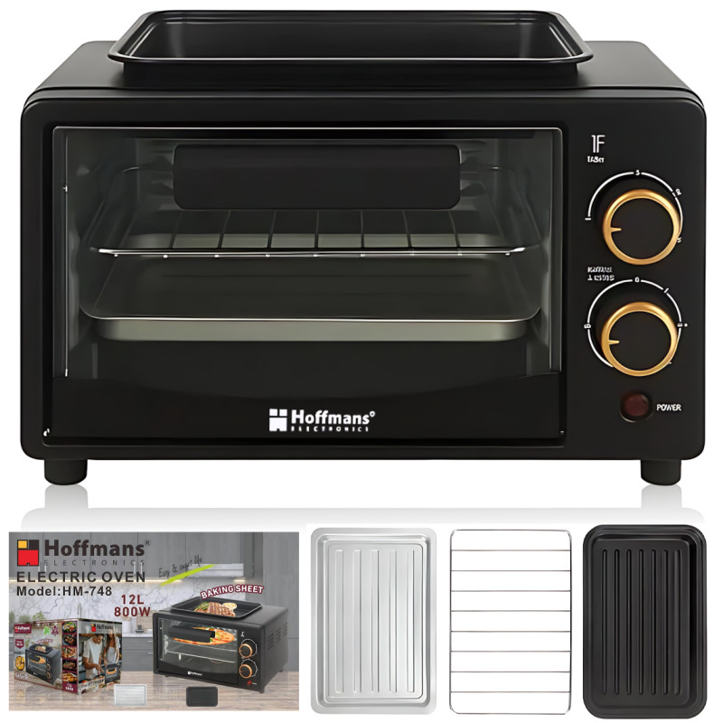 Духовка электрическая настольная Hoffmans HM-748, 12 л, 800 Вт, механическое управление, компактная, черная