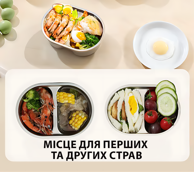 - ???? Два вместительных контейнера (1 л) – гарнир и основное блюдо удобно разделены.