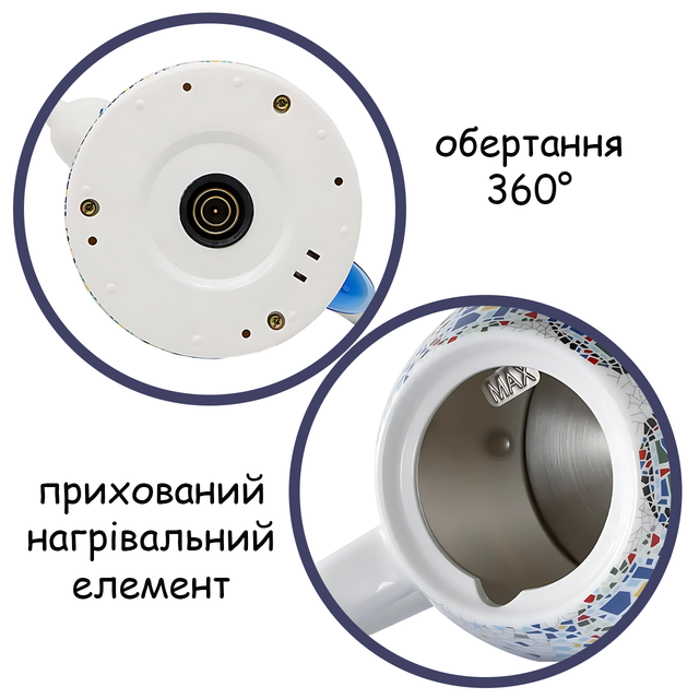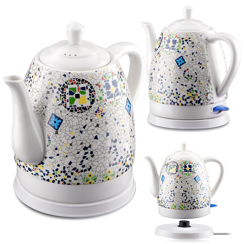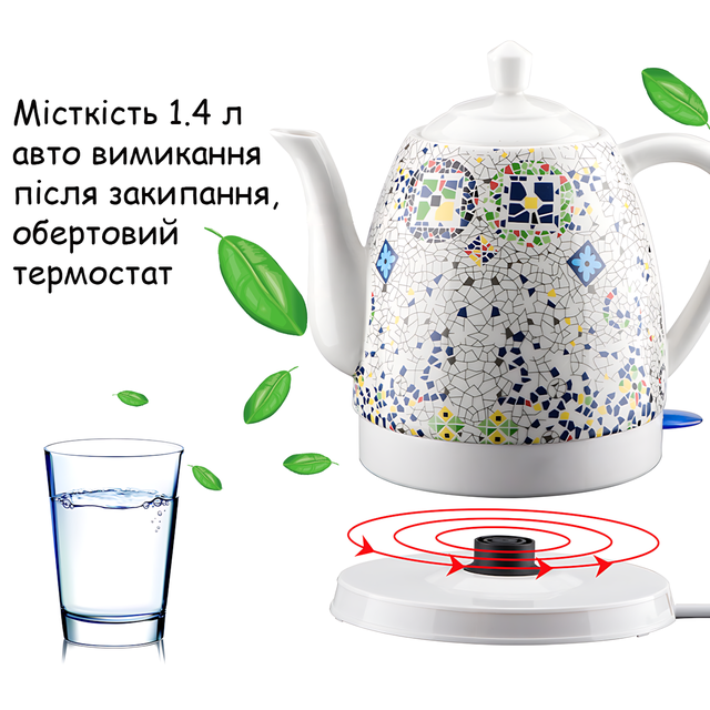Электрочайник керамический Domotec MS-7837 1,4 л 1000 Вт, со скрытым нагревательным элементом, с термоизображением «Мозаика», автоотключение и защита от перегрева