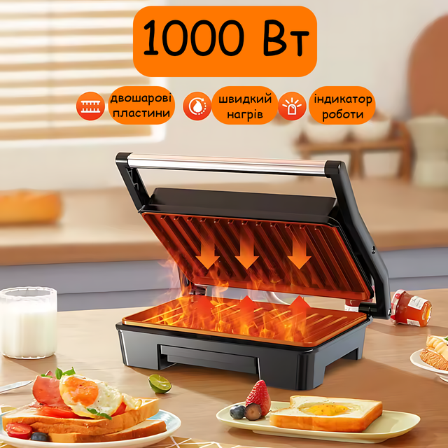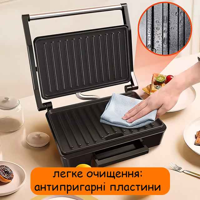 - 🥗 Антипригарные пластины — готовка без масла и лёгкая чистка.