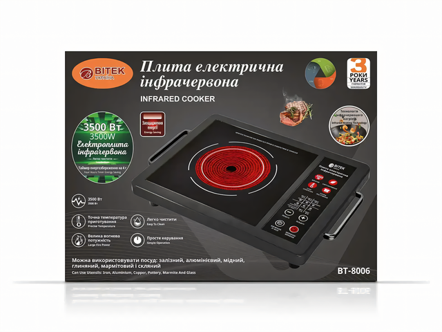 Электроплита инфракрасная BITEK BT-8006 мощностью 3500 Вт с одной конфоркой