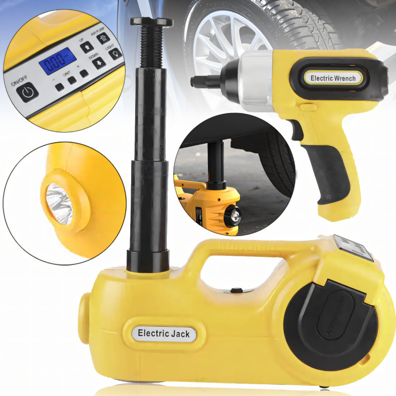 Электрический набор для автомобилиста 3 в 1 представляет собой универсальное решение для выполнения различных автомобильных работ. В комплект входят электрический домкрат, встроенный компрессор и гайковерт, что делает его идеальным инструментом для замены колес, подкачки шин и выполнения других аварийных работ на дороге.
