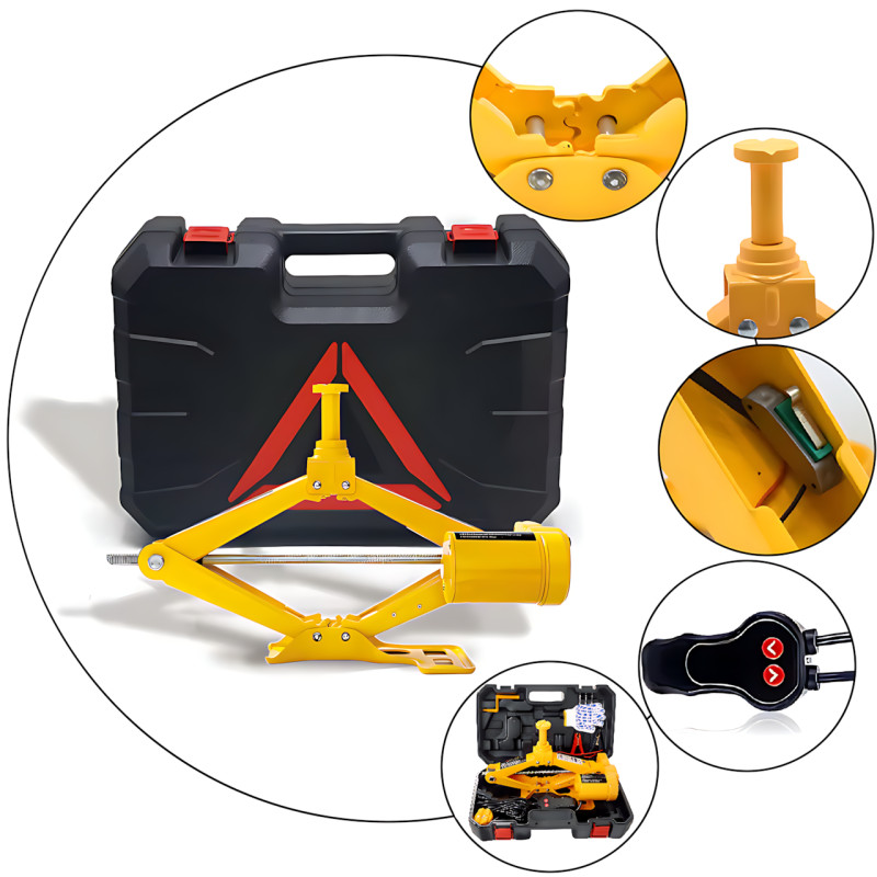 - Электрический привод: Домкрат работает от прикуривателя автомобиля, что позволяет легко подключить его и использовать в любых условиях;