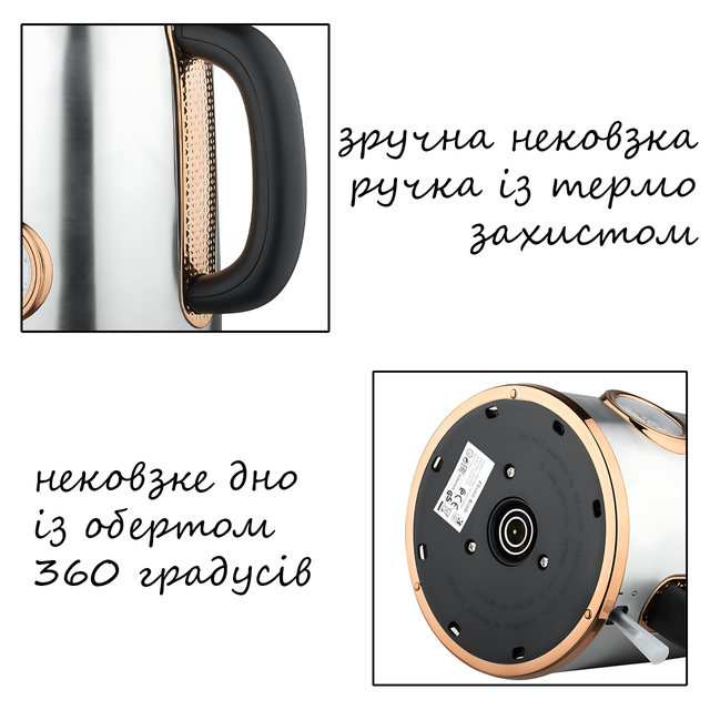 Корпус из нержавеющей стали делает его прочным и устойчивым. Встроенный термометр открывает новые возможности. Вы сможете контролировать температуру воды и готовить напитки правильно. Будь то ароматный кофе, зелёный чай, детские смеси.