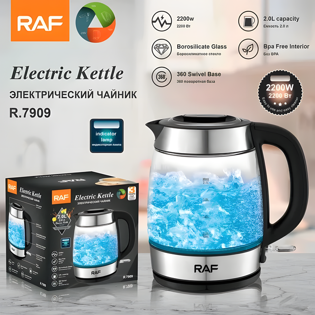 Элегантный дизайн, высокая мощность и удобство использования делают стеклянный электрочайник RAF R.7909 идеальным выбором для тех, кто ценит не только функциональность, но и стиль в своей кухне.