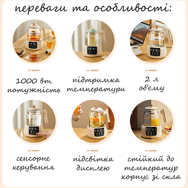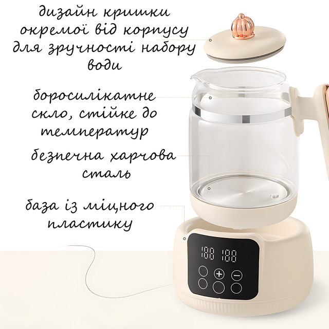 Сенсорное управление — словно лёгкое касание будущего. Никаких лишних кнопок, всё интуитивно-элегантно. Функция поддержки температуры избавит от вечного «опять закипятить», а режим подогрева молока станет находкой для семей с детьми. Тепло, удобно, безопасно.