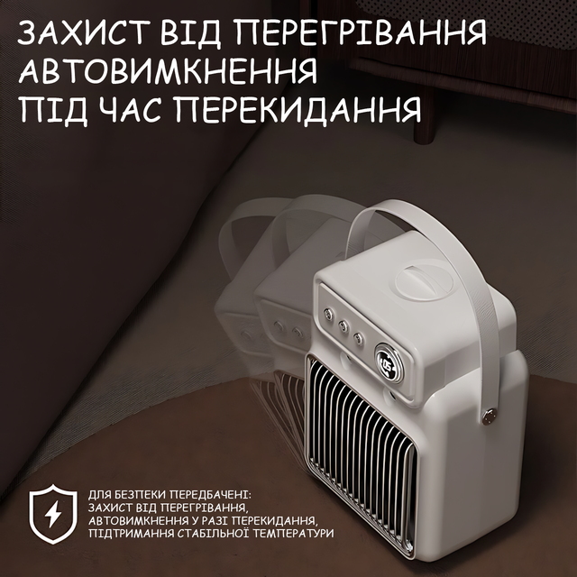 Компактный ABS-пластиковый корпус + удобная форма позволяют установить прибор на стол/на пол. Переносить между комнатами.
