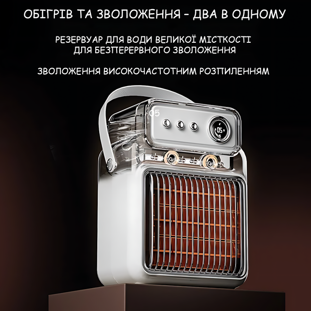 Этот мини-электро обогреватель 2-в-1 не просто греет — он одновременно увлажняет воздух. Помогая избежать сухости в помещении.