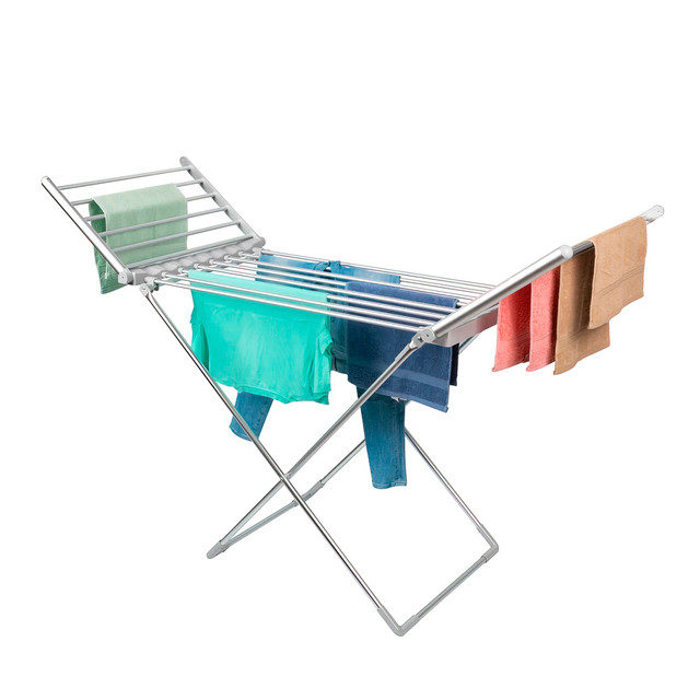 Сушилка для белья Highlands ELE01MOB - это устройство, которые выручит в дождливую погоду, зимой или просто заменит развешивания на веревках. Устройство выполнено из качественного алюминия, имеет ионизирующие нагревательные элементы, ножки оснащены пластмассовыми колпачками и не царапают пол. Девайс имеет небольшие размеры и складную конструкцию, благодаря чему удобно используется в быту. Допустимая нагрузка до 15 кг белья за раз, которые высушатся за 4 часа. После использования вещи не мнутся, не остается сырости и луж.