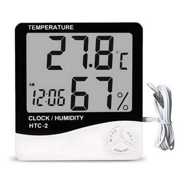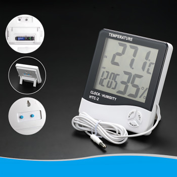 Цифровой термо-гигрометр HTC-2 с выносным датчиком: часы, календарь, будильник, измерение температур..