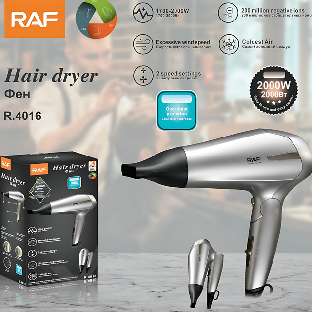 Фен для волос RAF 4016, дорожный складной фен для сушки волос с концентратором 2000 Вт, с холодным обдувом