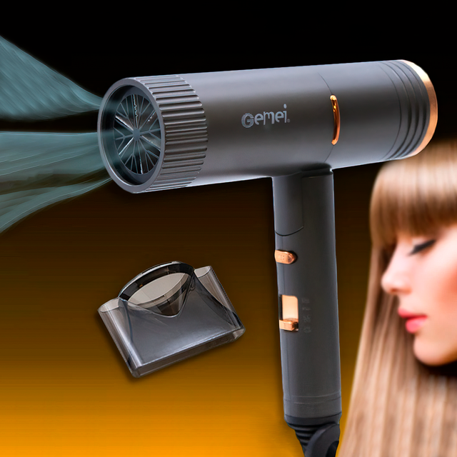 Современный профессиональный фен GEMEI GM-1788 отличается надежностью и качеством. Устройство имеет высокую мощность в 1800 Вт, что позволит быстро высушить волосы или сделать укладку. Данная модель оснащена защитой от перегрева, которая выключить ее при достижении критической температуры, тем самым продлевая срок службы прибора. В комплектацию входит насадка-концентратор, а также имеется петля для подвешивания прибора.