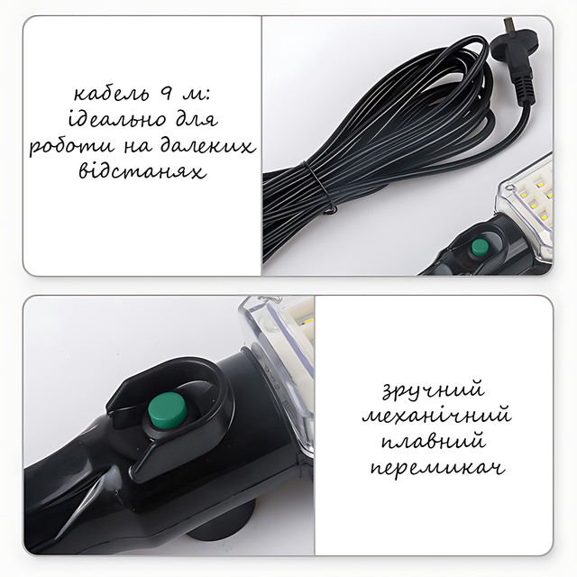 Фонарь-переноска BL-9025 для СТО с магнитом, COB LED, 1000 Лм, кабель 9 м, 220В, влагозащита IP44