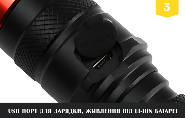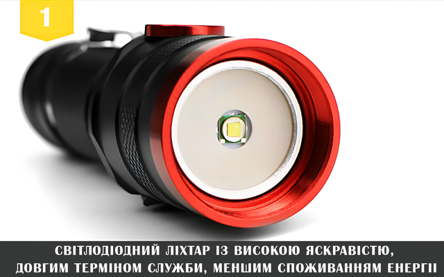 Фонарик создан из ударостойкого ABS-пластика, имеет защиту от пыли и подходит для использования в туризме или в экстремальных условиях. Работает на аккумуляторе Li-Ion 18650, обеспечивая до 10 часов непрерывной работы.