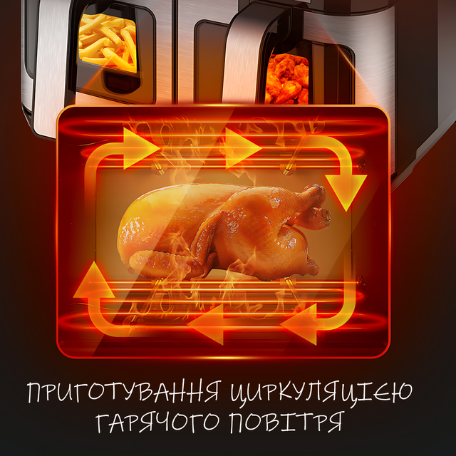 - 🔥 Большой объём 11 л — подходит для целой курицы и больших порций