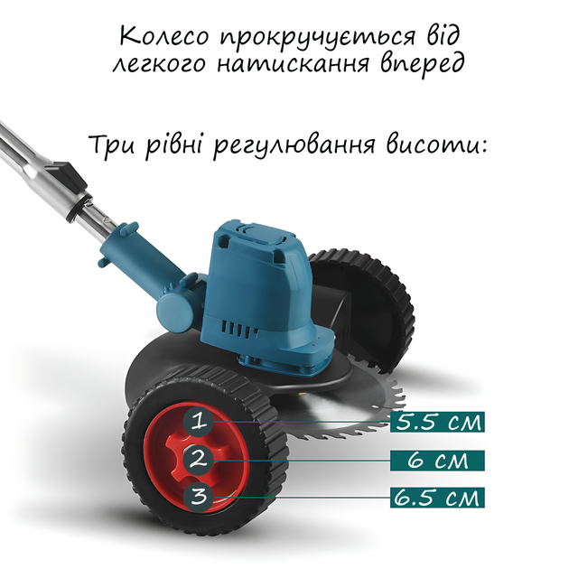- Легкость и мобильность: Вес устройства составляет всего 1.8 кг, что делает его легким и удобным в обращении, а полный привод колес помогает легко перемещаться по участку.