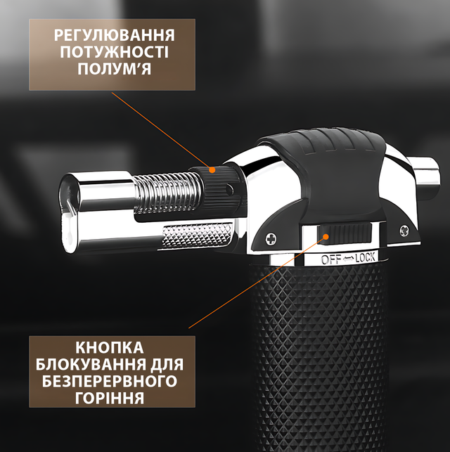 - ✔ Функция блокировки для непрерывного горения – удобна для долгих задач.