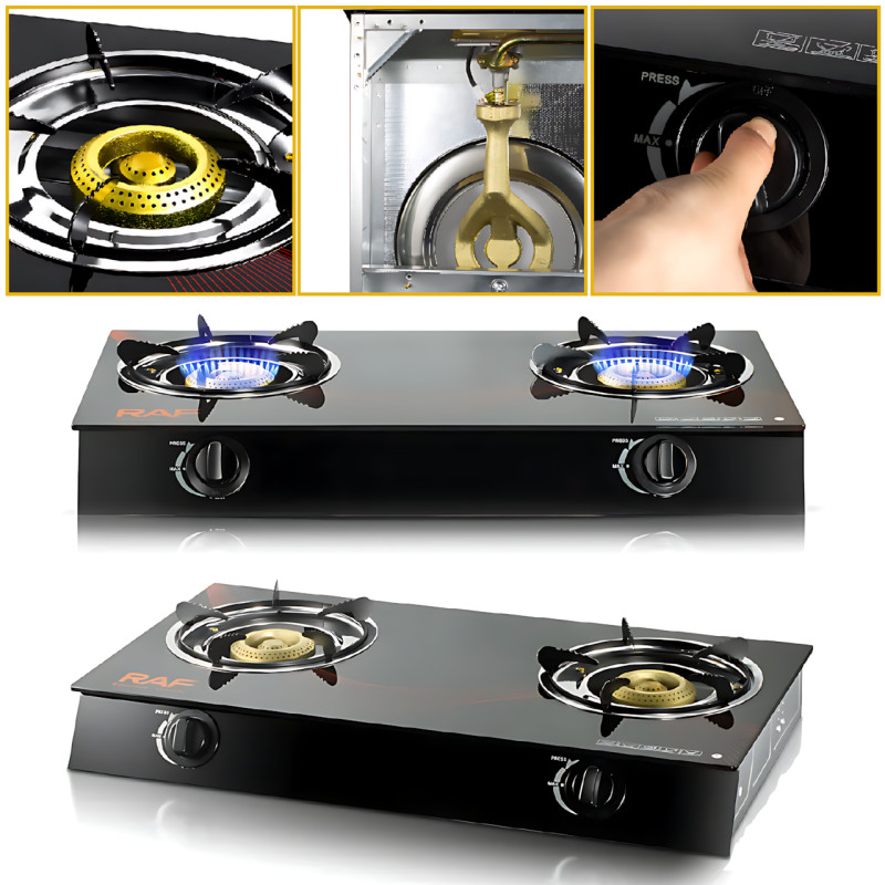 Газовая варочная панель RAF R.8051, механическая с керамической поверхностью, 2 конфорками, электроподжигом