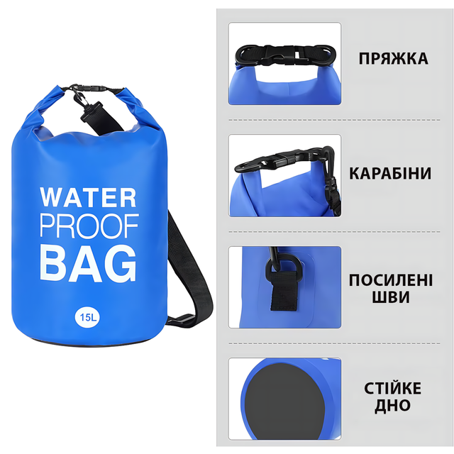 ???? Гермомешок 15 л Ocean Pack ART-0526, синий — максимум полезного объема и стопроцентной защиты