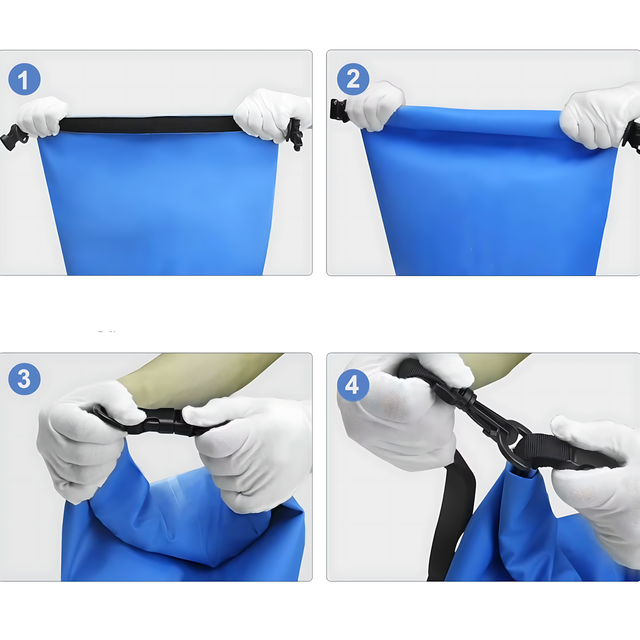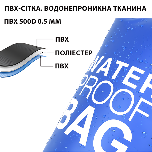- ???? 100% герметичность (IPX65). Бесшовный корпус из прочного и гибкого ПВХ 500D, надёжная застёжка roll-top и плотность 650 г/м² — всё это превращает мешок в настоящий бастион от влаги, грязи, песка и пыли.