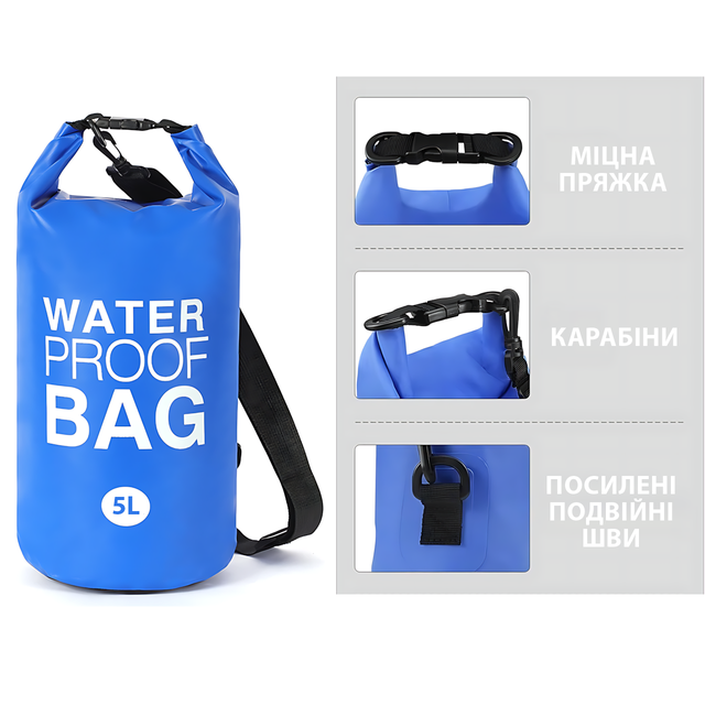 ???? Гермомешок 5 л Ocean Pack ART-0525, синий - водонепроницаемая сумка для активной жизни