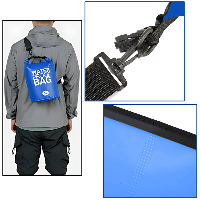 - ???? Оптимальный размер - 5 литров. Идеален для коротких походов, пляжа или сплава: вместит полотенце, сменную футболку, павербанк, телефон, документы, еду или аптечку.