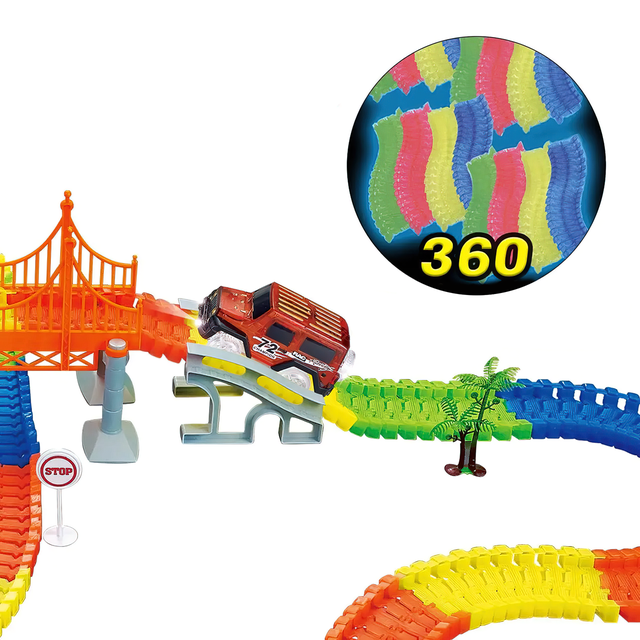Magic Tracks 360 - увлекательная гоночная трасса, включающая 360 деталей, мост и две захватывающие гоночные машинки. Уникальность этого конструктора заключается в его гибкости: трек легко изгибается на 360 градусов, что позволяет создавать неограниченное количество форм и маршрутов.