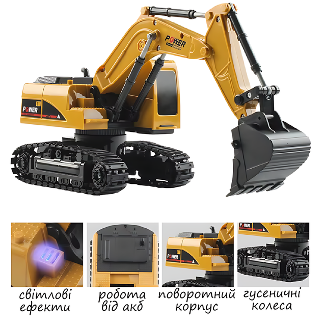 Гусеничный экскаватор на радиоуправлении, со световыми эфектами, пультом управления, 28 см