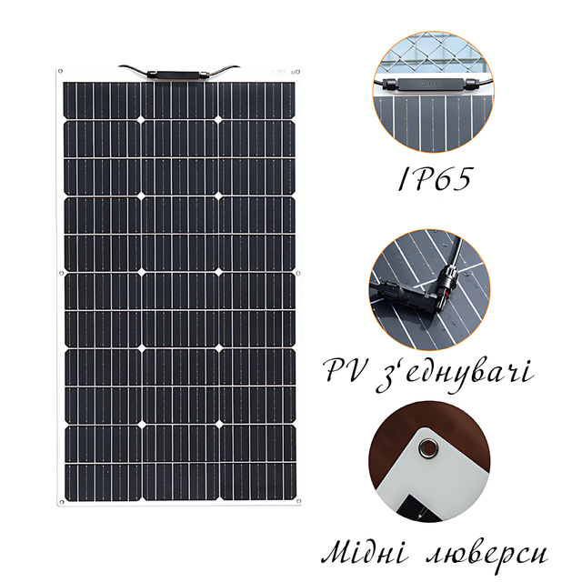 Гибкая панель 100W – это практичное, современное и экологичное решение для тех, кто ценит независимость и удобство в энергоснабжении. Используйте её для зарядки аккумуляторов, питания приборов или создания автономных энергетических систем, и будьте уверены в стабильности энергии даже вдали от цивилизации!