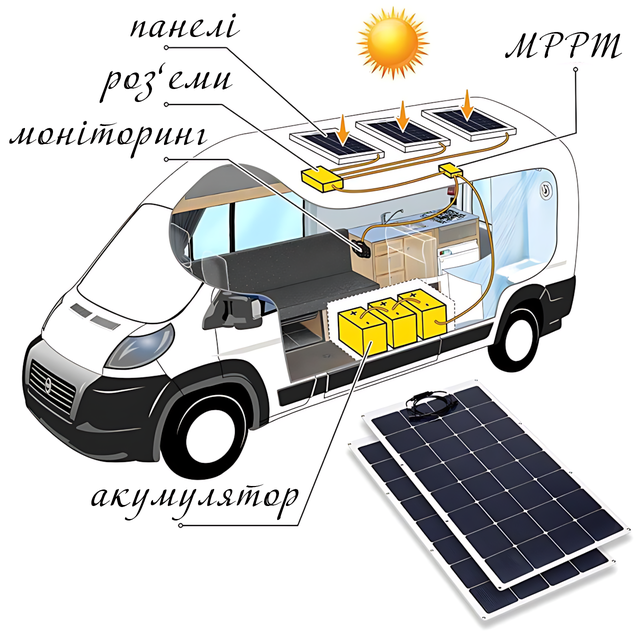 - Гибкая монокристаллическая панель 100W;