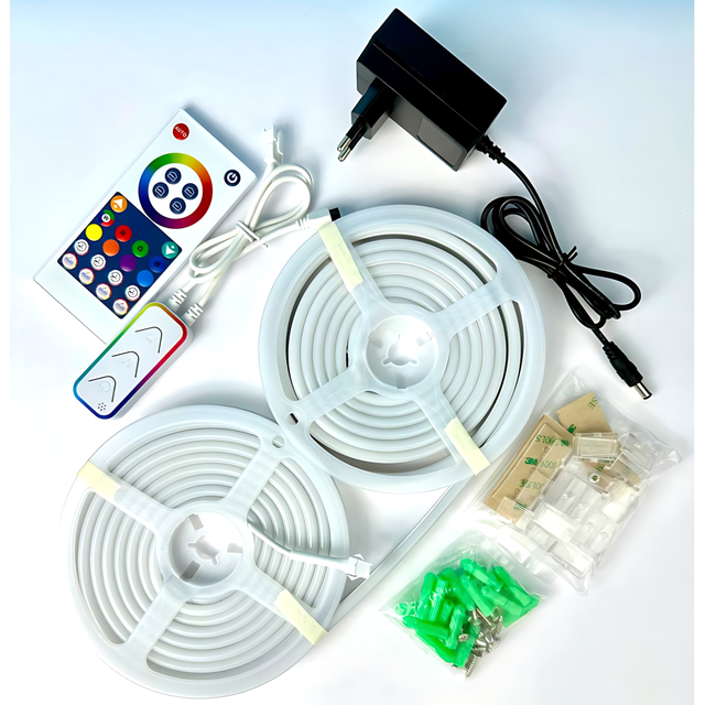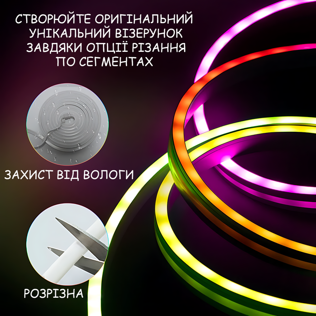 Гибкая светодиодная неоновая лента RGB 2м Wi-Fi Music Sync 12–24В, с пультом, приложением, диммером, силиконовая, 84 LED, IP67