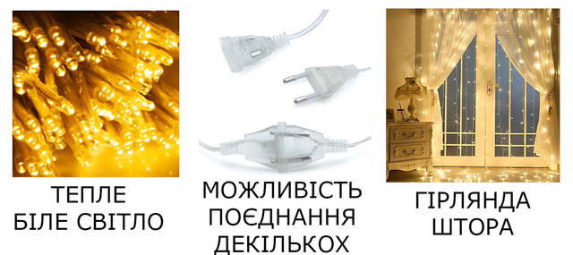 - Тип освещения: Гирлянда-штора (водопад, string-light);