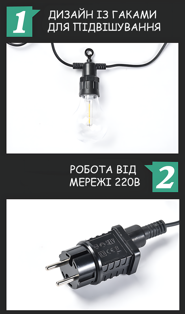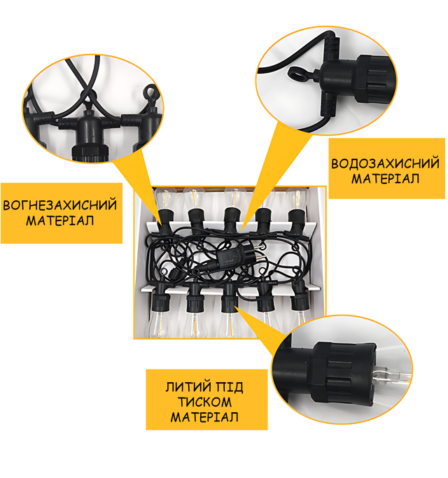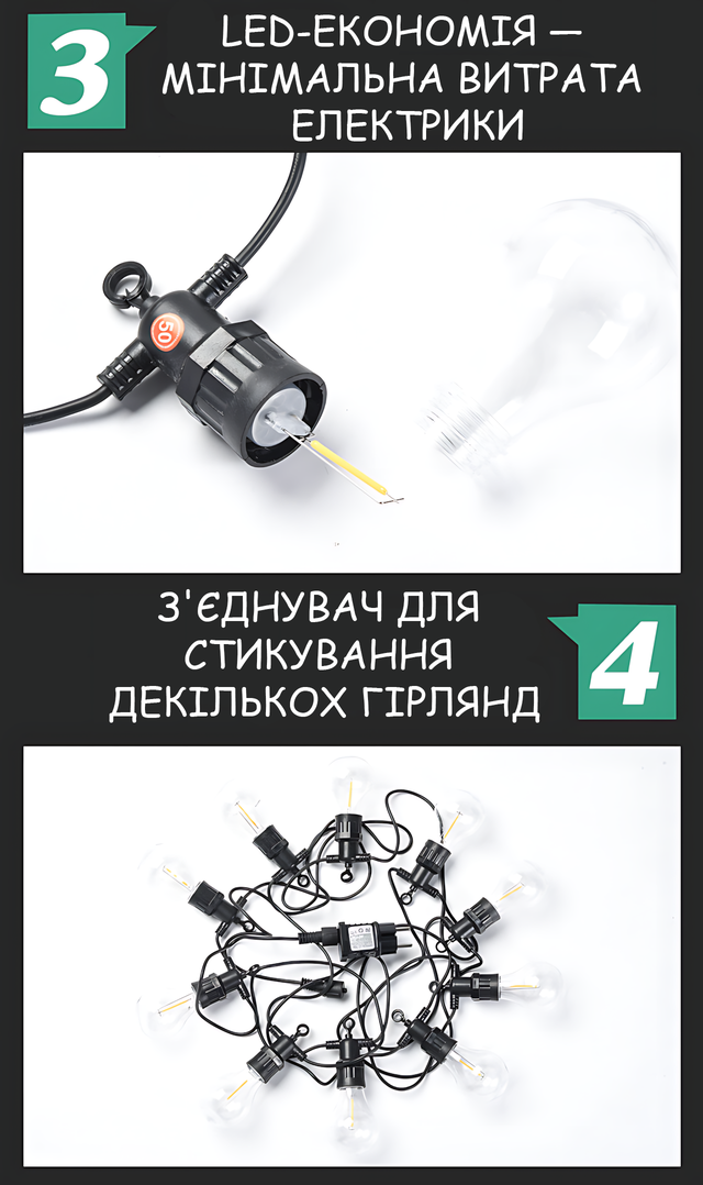 - Дополнительно: соединитель для стыковки нескольких гирлянд;