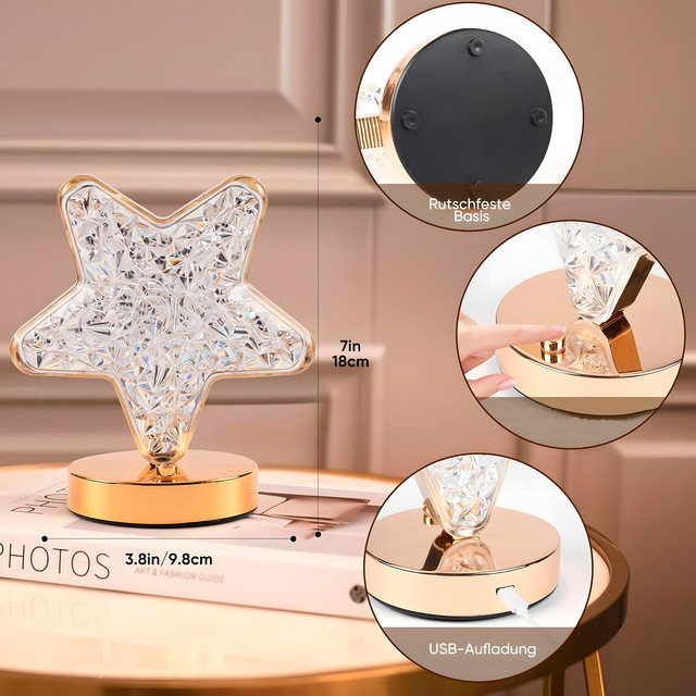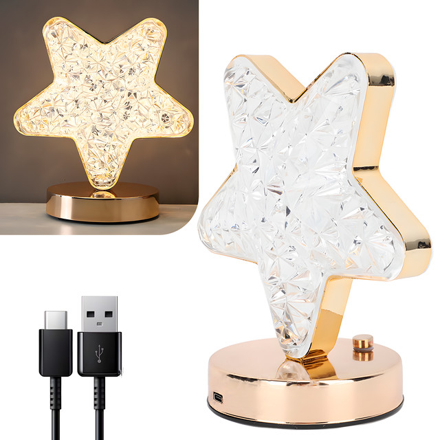 Хрустальная лампа ночник в форме звезды, 3 режима работы, Аккумуляторная Usb Type-c