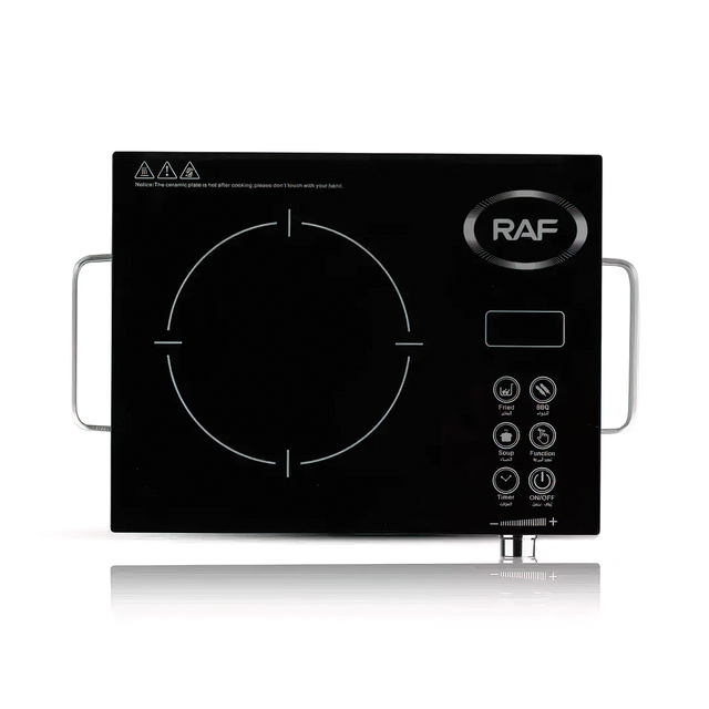 Электроплита RAF R.8003 оборудована сенсорным управлением с ЖК-дисплеем, таймером и четырьмя предустановленными режимами работы: жарка, гриль, варка и барбекю. Мощность нагрева может быть регулирована в широком диапазоне, а температура нагрева при гриле и барбекю также регулируется. Очистка плиты очень проста, достаточно протереть ее салфеткой. Эта индукционная плита идеально подходит для небольших помещений, дач и путешествий.